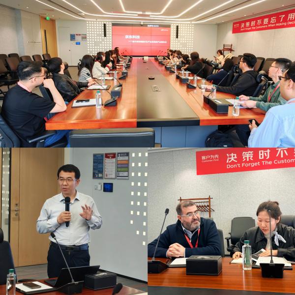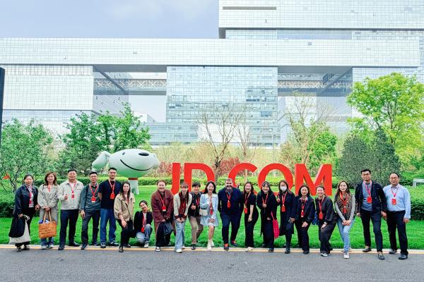 为深化中外合作办学实践教学改革,推动AI技术与零售管理深度融合,4月17 日,由诺欧商学院项目部主办的“AI 智航,数启新章”—— 中外合作办学 2026 年度AI研创系列活动之“走进京东集团”圆满举行。诺欧零售管理硕士项目 20 余名学员在Othman BOUJENA教授带领下,通过实地参访与深度研讨,沉浸式感受AI技术为零售行业带来的效率革命与模式创新。